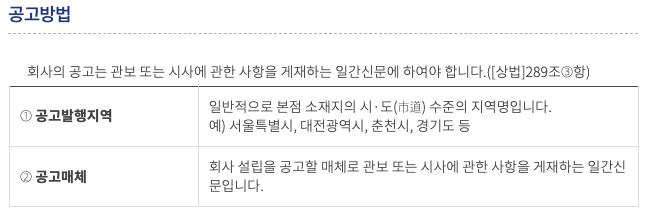 이제 뭐 어떤 메뉴 넣을지 그런거 고민하면 되겠다. 일단 기업 홈페이지에는 기업 정보나 제품 정보는 기본이고 공지를 할 수 있는 공간도 필요해. 이번에 스타트업 법인설립을 셀프로 진행하면서 알게 된건데 모든 기업은 기업 활동과 관련해서 공고 방법이 필요해. 상법에는 일간신문에 게재하라고 되어 있는데 회사 정관에 공고 방법으로 홈페이지를 지정하면 돈 써가며 일간 신문에 게제하지 않아도 돼.