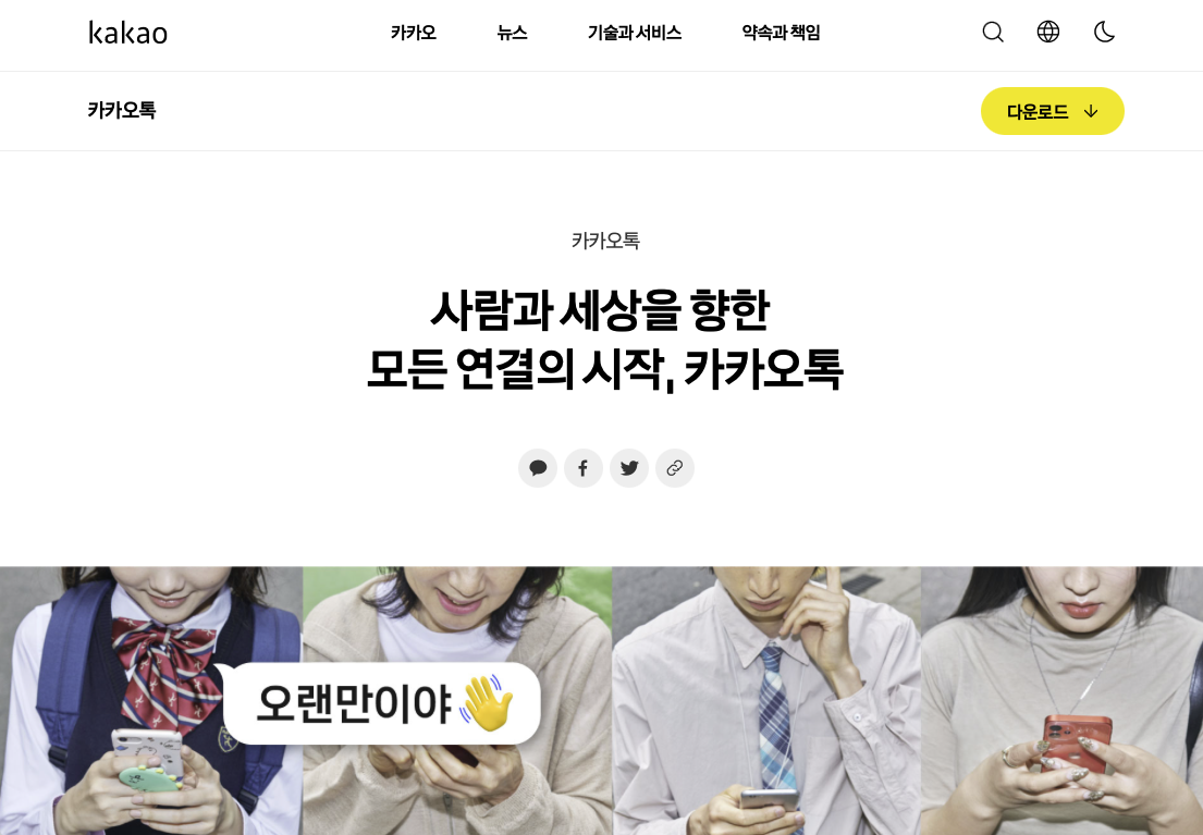 난 notice 페이지랑 contactus 페이지랑 둘 다 잘 들어가지네. 이제 내용을 채워넣어야 해. 고통의 시간이지 ㅋㅋ 어떻게 해야할지 잘 모르겠다면 다른 회사들 어떻게 하는지 보자구. 아래는 카카오톡, 라인 웹 페이지야. 우리도 비슷한 형식으로 따라가 보자구.