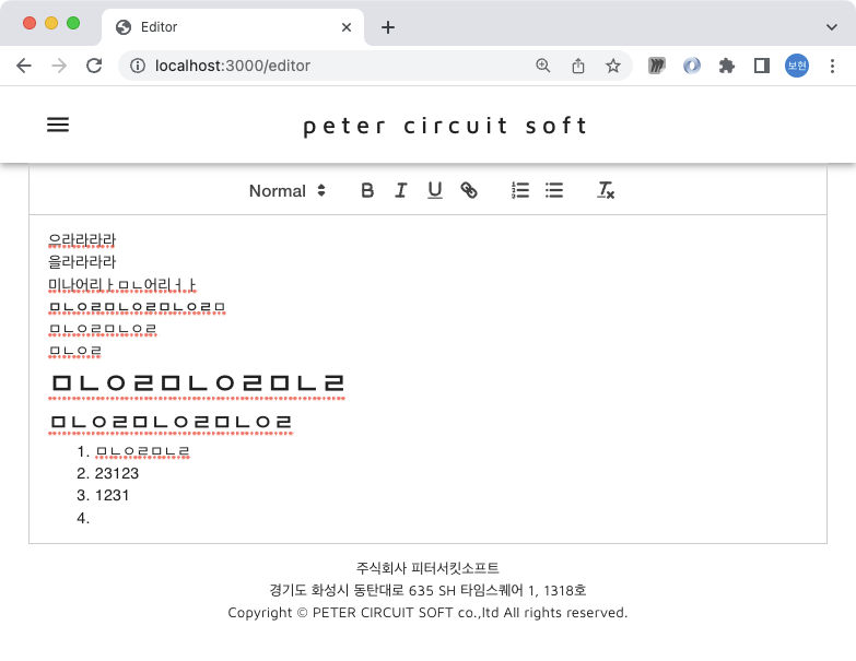 이렇게 하고 나면 아래와 같이 헤더가 한개인 quill 에디터가 뿅하고 나와.