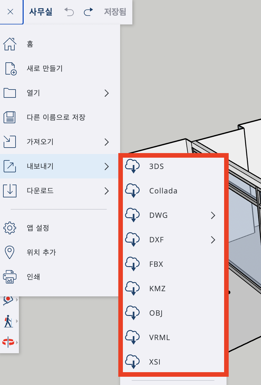 먼저 이전에 만들어놓은 스케치업 모델 👆을 stl로 다운로드 했어.