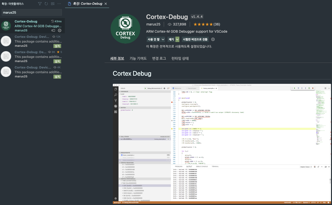 - cortex-debug: rpi가 cortex M0 기반이니까 당연하겠고. 설치 고고