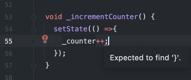 음 그런데 Arrow function은 좀 사용법이 틀려. Javascript에서는 그냥 대수롭지 않게 사용했는데 Dart에서도 무심결 사용해보니 이상한 에러가 나오더라고.. -_-;