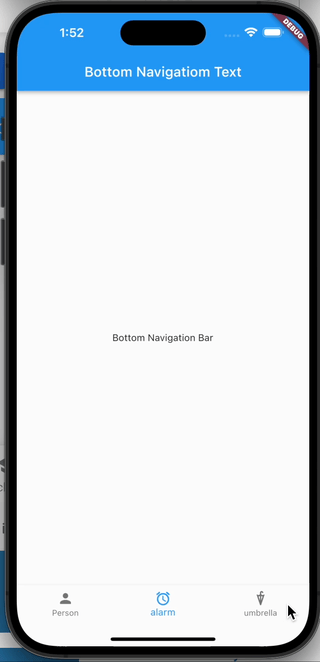 BottomNavigationBarItem(icon: Icon(Icons.alarm), label: "alarm"),