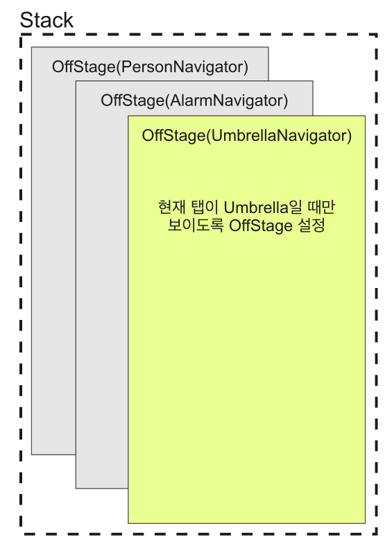 이렇게 하기 위해서는 Stack 위젯과 OffStage라는 위젯을 사용하는데 Stack 위젯으로 모든 tab의 navigator를 겹치게 그리고 OffStage 위젯으로 각 navigator를 감싸서 현재 탭이 자기 것이 아니면 안보이도록 하는 방식이야. 음 왠지 무식하지만 심플한게 마음에 쏙드는 방식이군!! 설명한데로 main.dart의 scaffold body 부분을 Stack과 OffStage를 사용하도록 변경했어👇👇