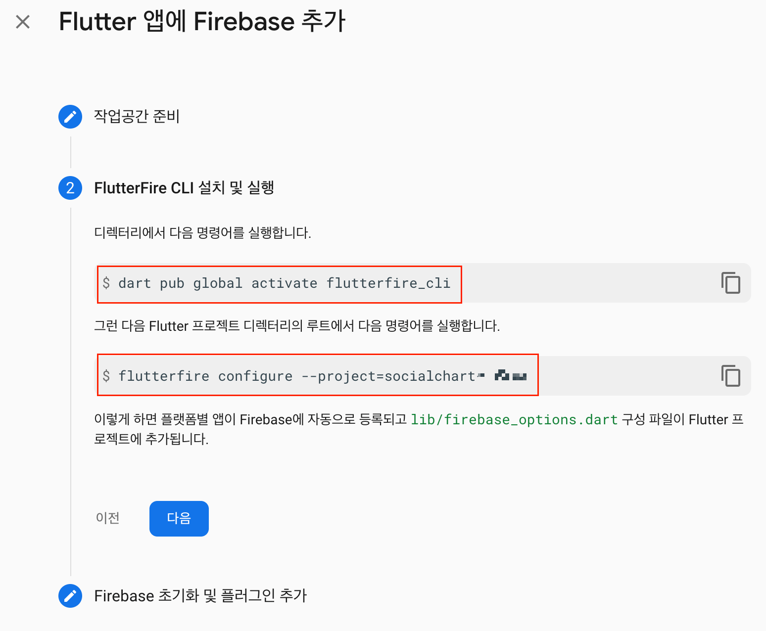 firebase_core 패키지 설치.
