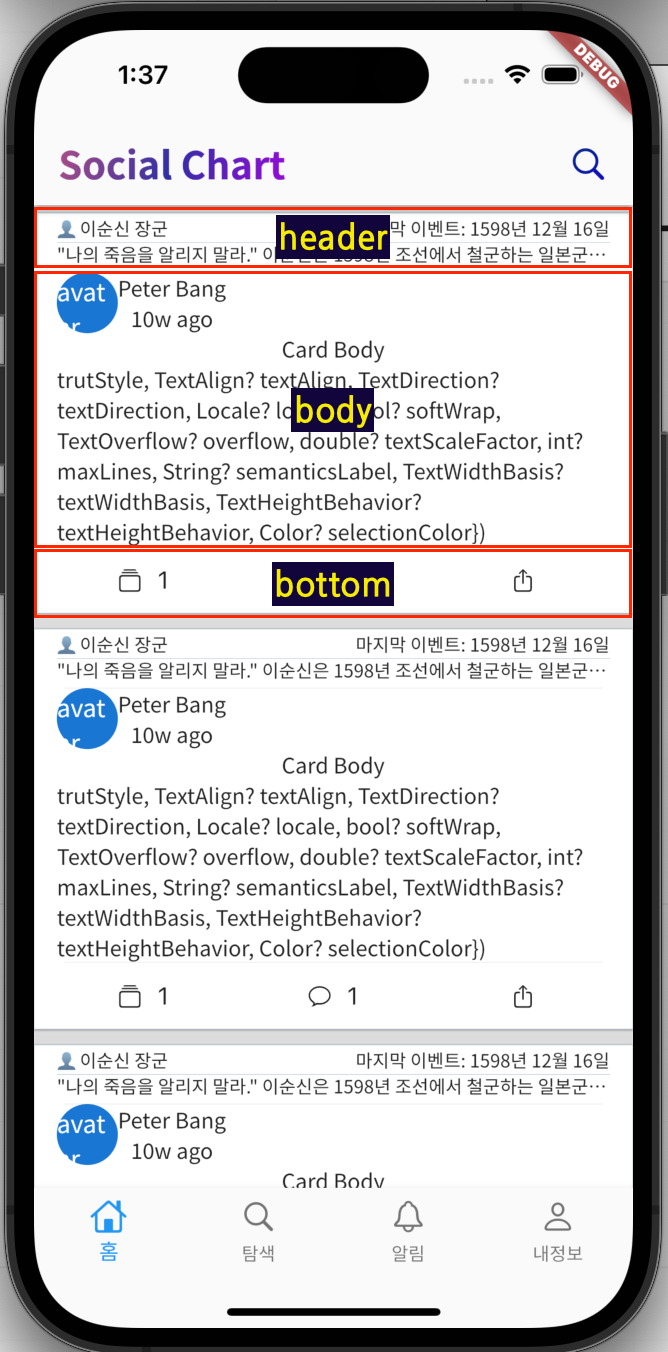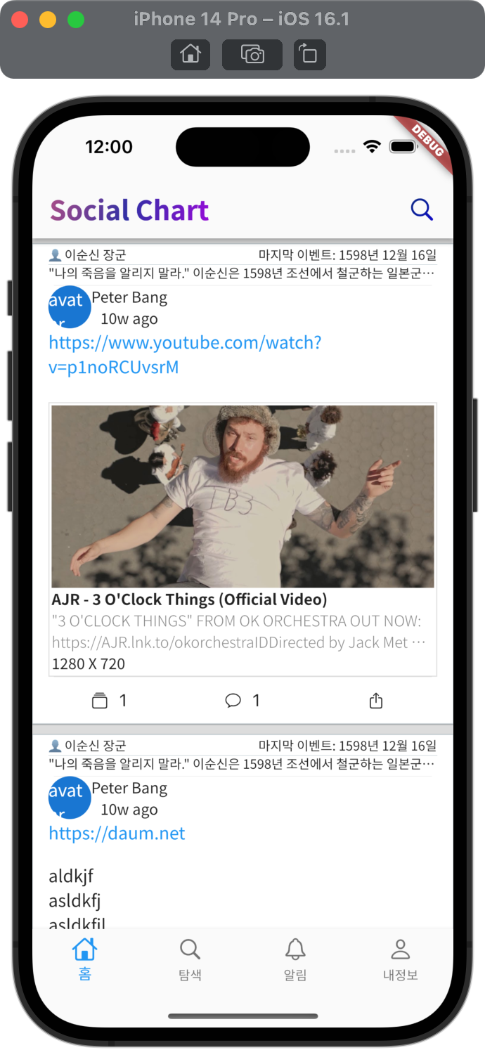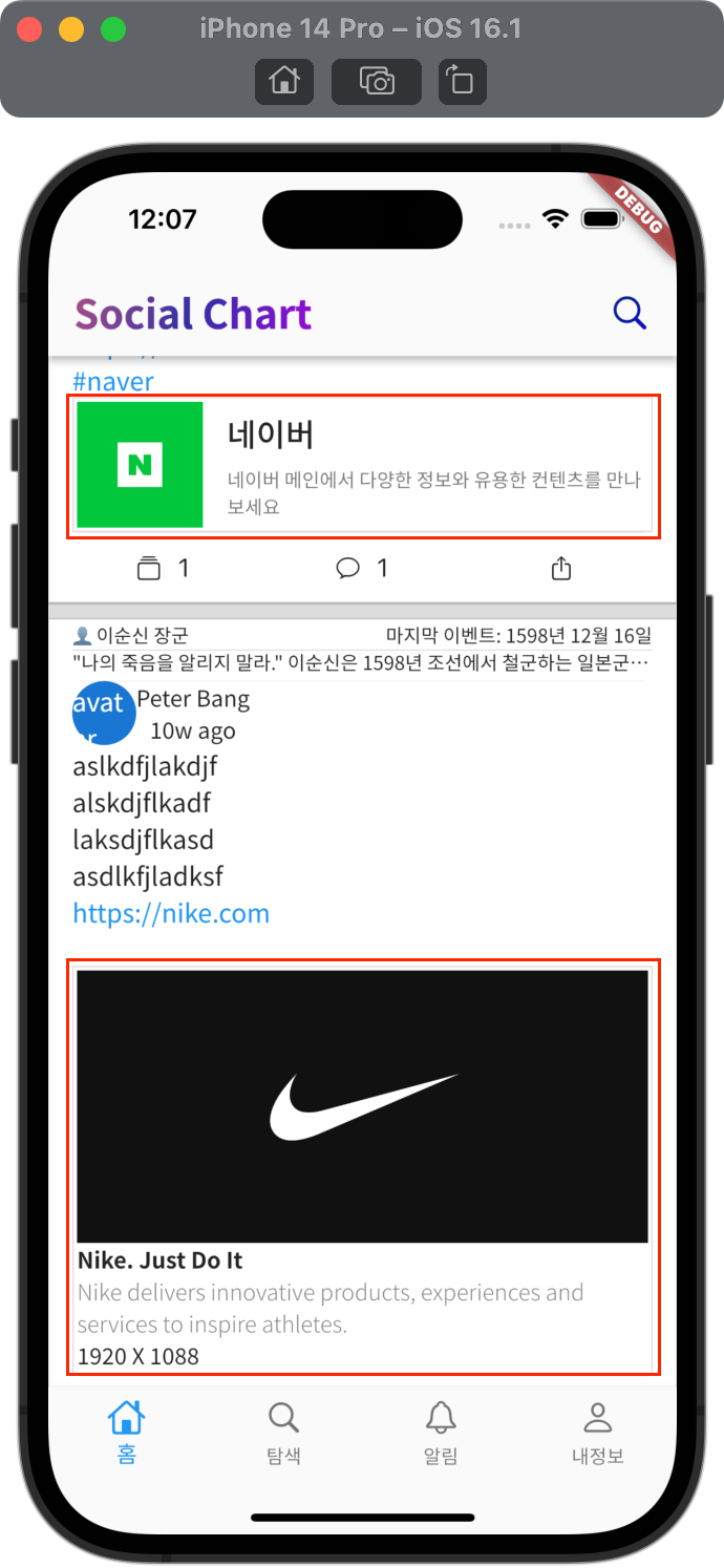 여기에 이제 linkPreview도 보여주고, Text 위젯도 정렬하고 ㅎㅎ 개발하는 도중이지만 이쁜게 좋잖아?👇