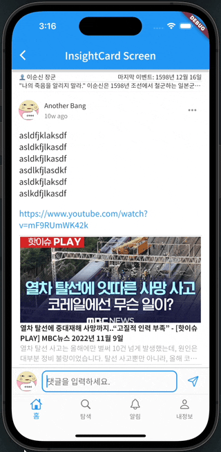 물론 수정해야할 것들이나 추가해야 할 것들이 매우 많지만 일단 기능 구현에만 중점을 두고 작업했고 댓글 리스트를 위한 위젯은 유저 포스팅 리스트에 사용했던 infinite_scroll_pagination을 또 사용했어. infinite_scroll_pagination 매우 좋아!