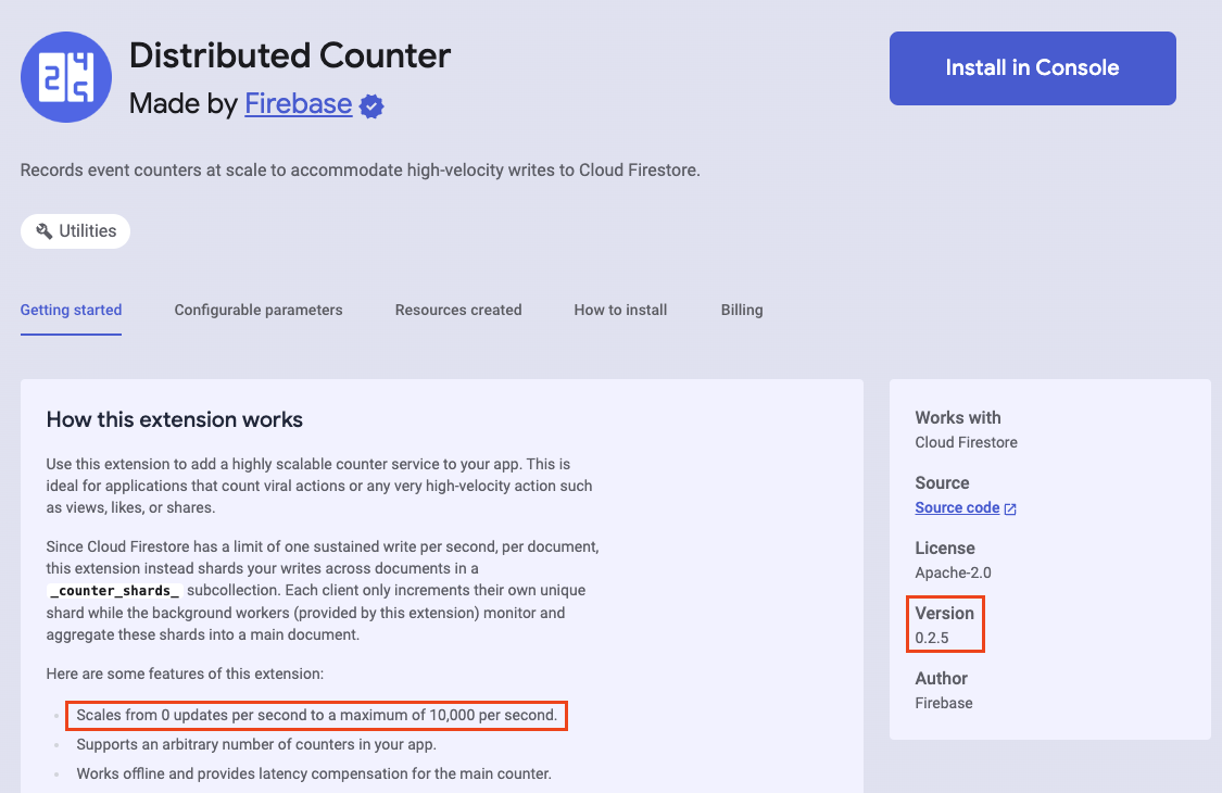 이 extension은 counter update를 cloud function에서 수행하도록 해서 내가 따로 shard 따위를 유지할 필요가 없지 훗 ㅎ 또 초당 10,000 회까지 업데이트를 지원하고 자동으로 합산되어 본 문서에 업데이트도 된다구!!!