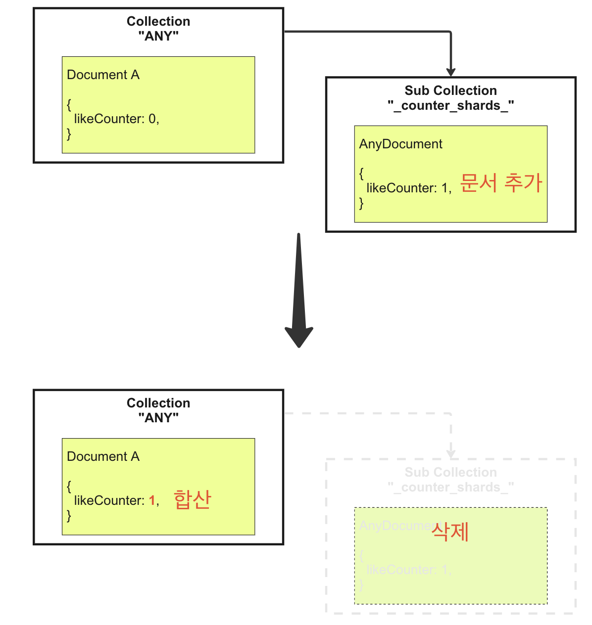 //_counter_shards_ subcollection에 likeCounter:1 포함하여 문서 추가