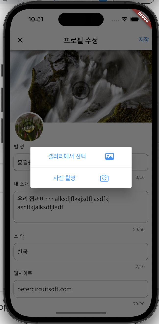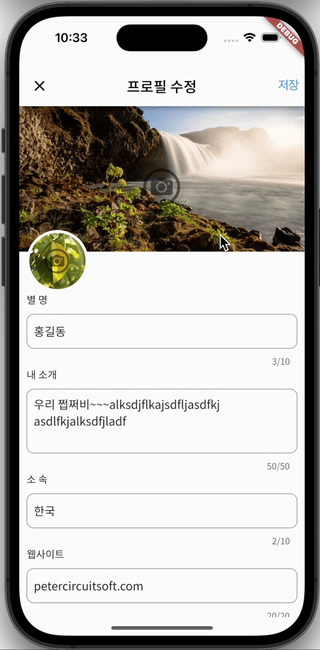사진이나 소개 같은 프로필 정보를 수정하는 화면을 만들었어. 별건 아닌데 ㅎ 은근 짜증 ㅎ