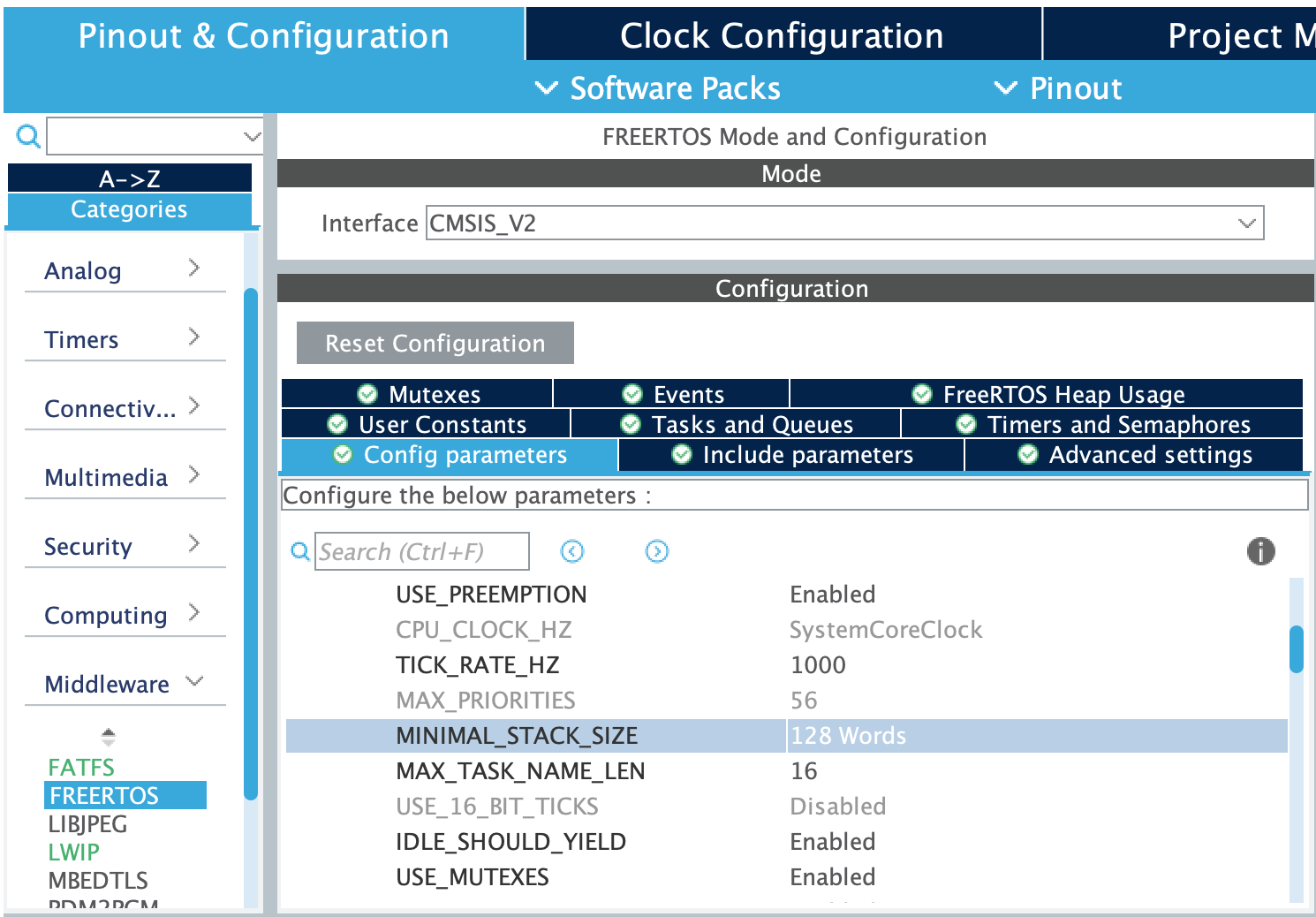 configMINIMAL_STACK_SIZE를 안쓰고