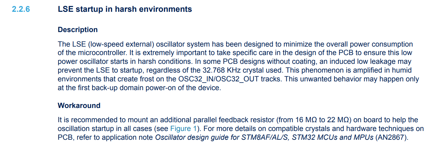 그리고 아래는 stm32f1 시리즈 errata sheet인데 이놈도 LSE가 지랄맞;;;;
