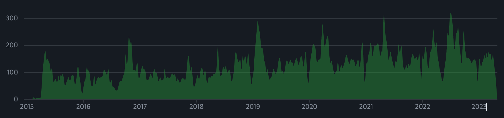 아래는 github commit contributor 수인데 꾸준히 많은 개발자들이 개발에 참여하고 있다는 소리겠지.