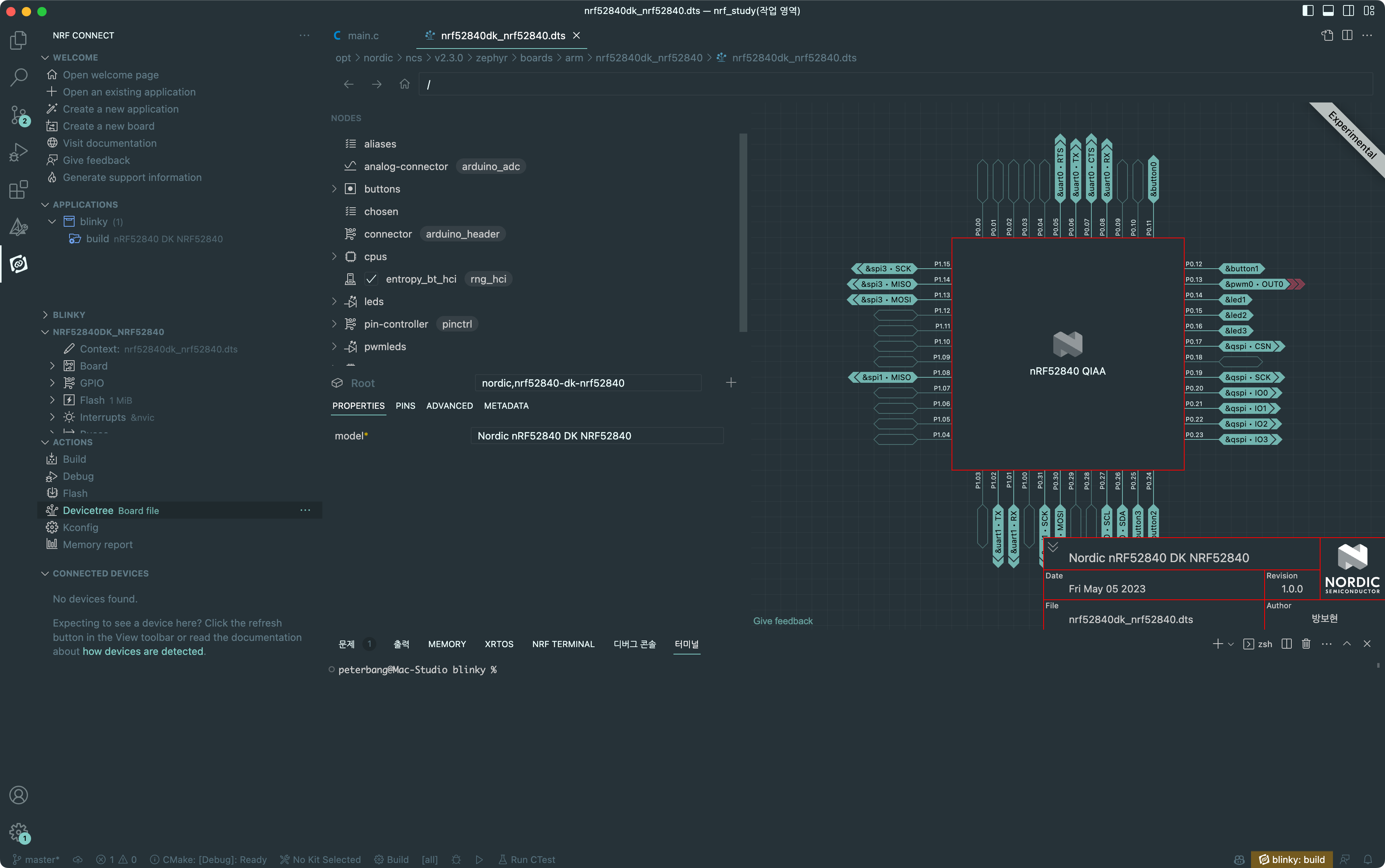2023.05.01 - [임베디드 소프트웨어/Zephyr] - Nordic NRF52840 + Zephyr 개발 환경 구축 Nordic NRF52840 + Zephyr 개발 환경 구축nrf52840을 위한 zephyr 개발 환경은 vscode에 nrf extension을 설치하는 방식으로 구축해. 공