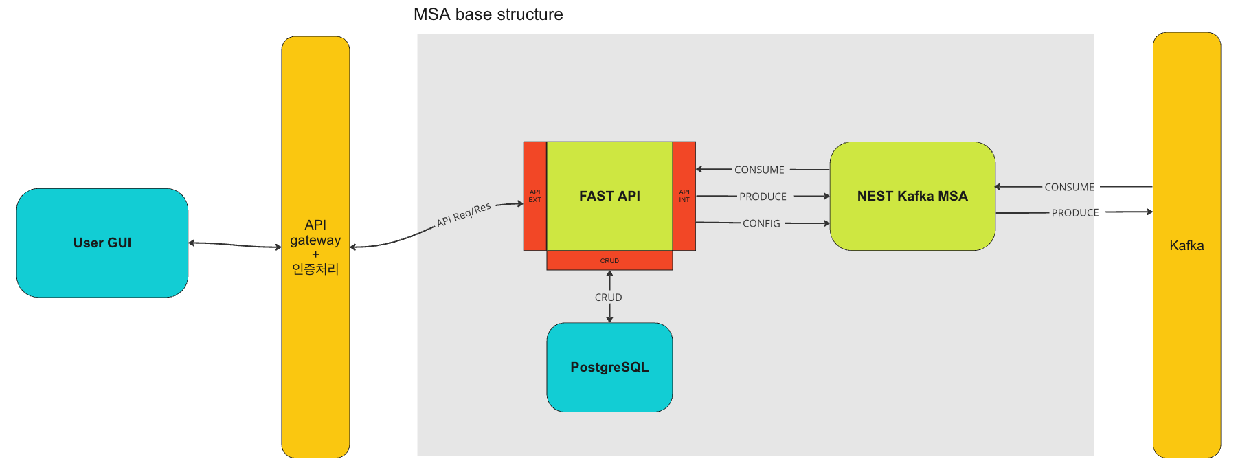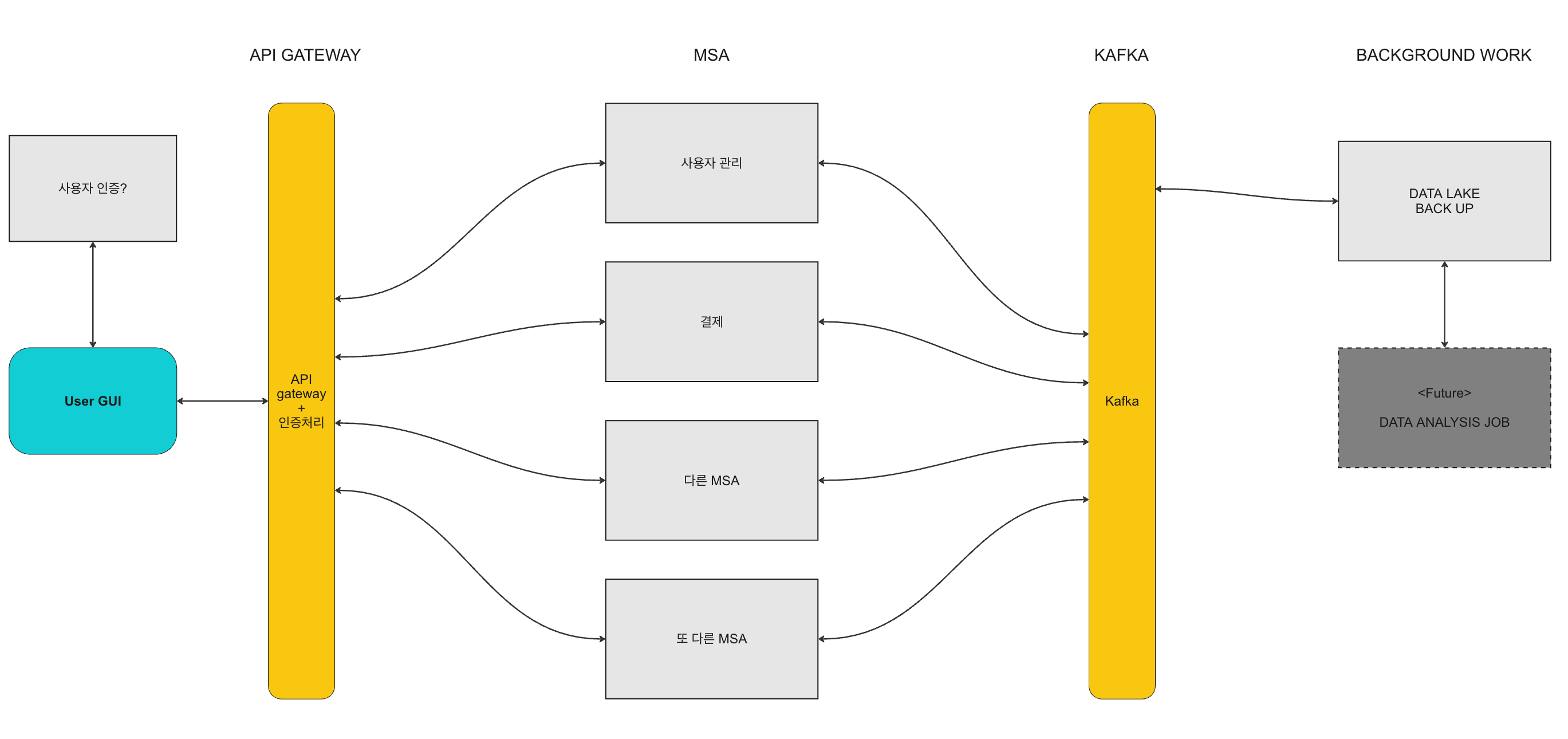 그리고 API gateway는 각 MSA 모듈과 맵핑되어 있도록 했어.