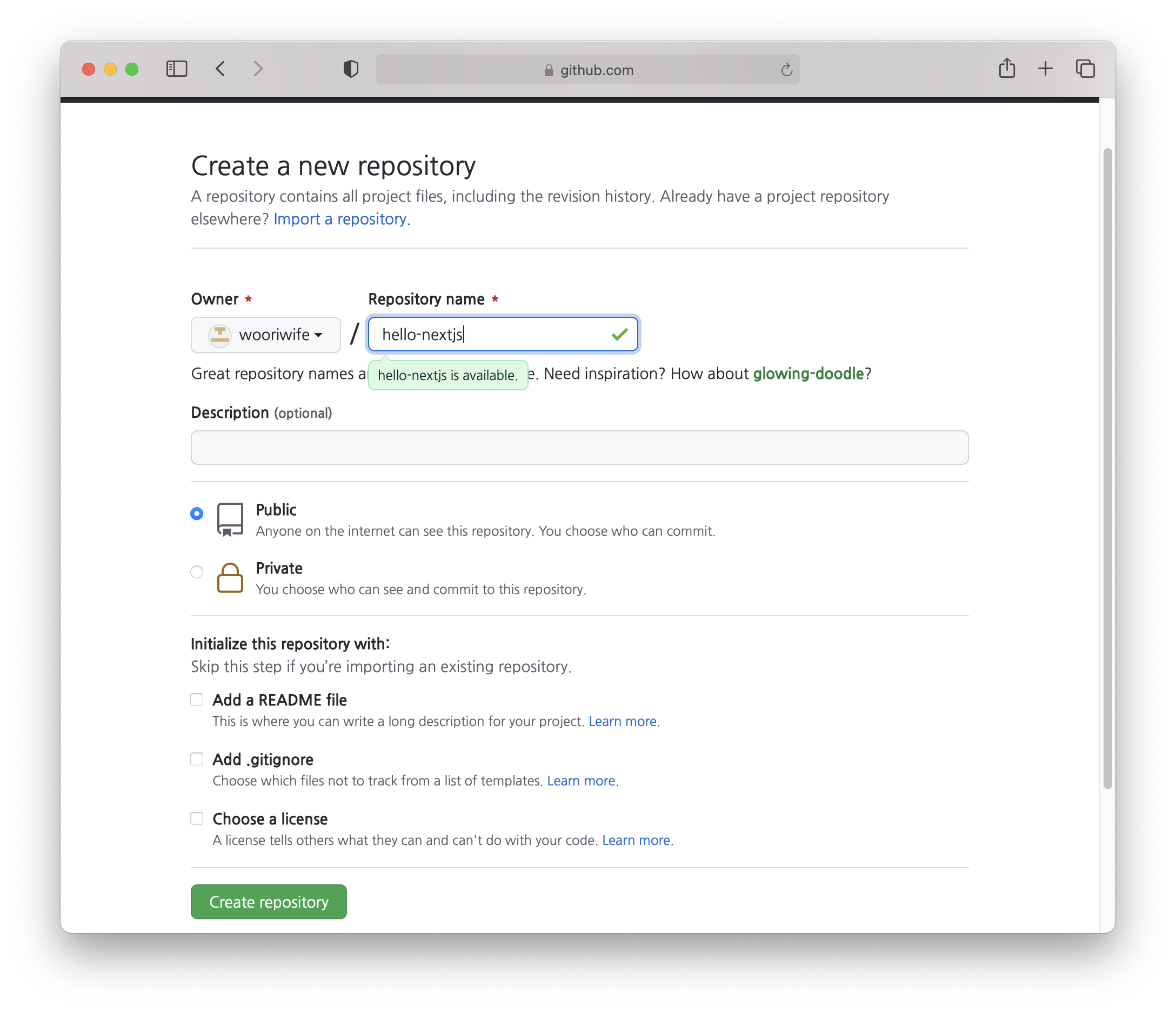 git remote add origin https://github.com/wooriwife/hello-nextjs.git