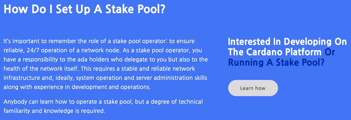 노드들은 윈도우, 리눅스, MacOS에도 설치가 됩니다. 하지만 윈도우나 맥은 도저히 권장할 수가 없습니다. 일단 맥북 M1에는 설치 자체가 되지 않습니다. 또 24시간 365일 동작해야하고 고정된 IP나 도메인도 필요합니다. 이런 이유들로 저는 AWS EC2를 노드로 사용하고 있습니다. 라즈베리파이 같은 초저렴한 컴퓨터를 사용하는 스테이킹 풀도 있는 것 같긴 합니다만... 갑자기 뒷목이.. 그리고 마지막으로 스테이킹 풀의 홈페이지 링크를 제공해야 합니다. 이 말은 홈페이지도 하나 만들어야 한다는 소리겠네요. 저는 Nextjs + AWS amplify로 한 페이지 짜리 홈페이지 하나 만들었습니다. 귀찮으시면 블로그 주소같은 곳을 연결하셔도 됩니다만 스테이킹 풀의 홍보나 신뢰도 측면에서 이쁘게 해놓는게 좋지 않을까요? ㅎㅎㅎㅎㅎ 1920억 유치해야지요 ㅎㅎㅎ