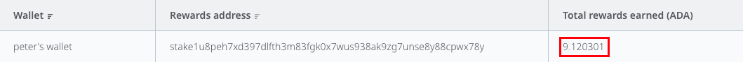총 7.426693 ADA가 보상으로 들어왔습니다. 9월 23일 아침 시세(2760/KRW)로 약 20,497원 입니다.
