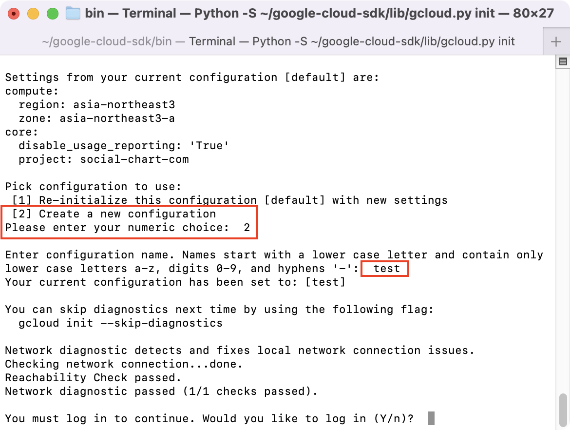 그리고 /google-cloud-sdk/bin/ 으로 이동해서 gcloud 초기화 해주자.