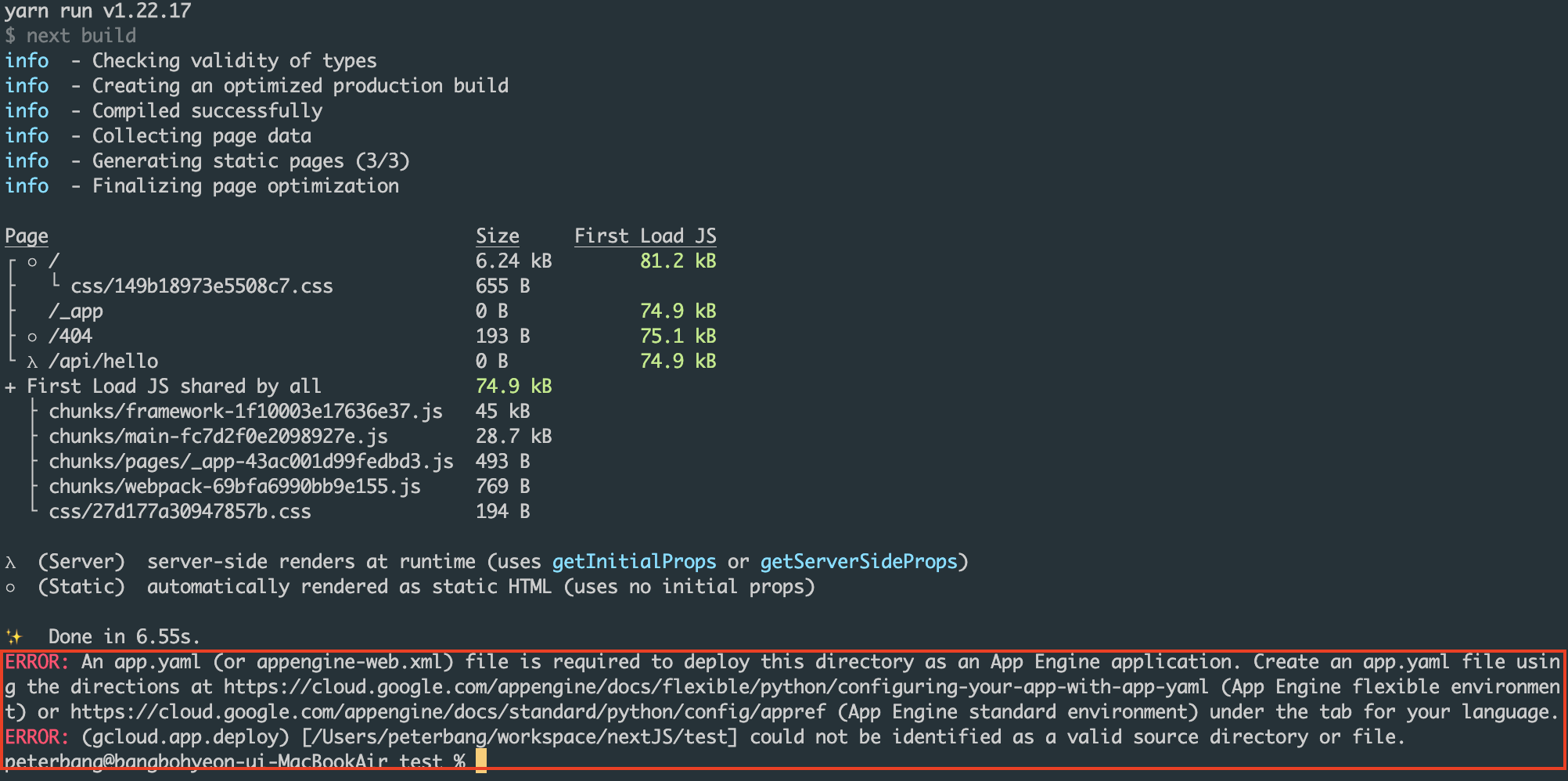 app.yaml 파일을 next.js 루트 폴더에 생성해야 하는데 에러의 예제는 python 꺼니까 보면 안되고~ 아래 링크 걸어놨어. 나중에 배포 디테일하게 구성하려면 참고하고~