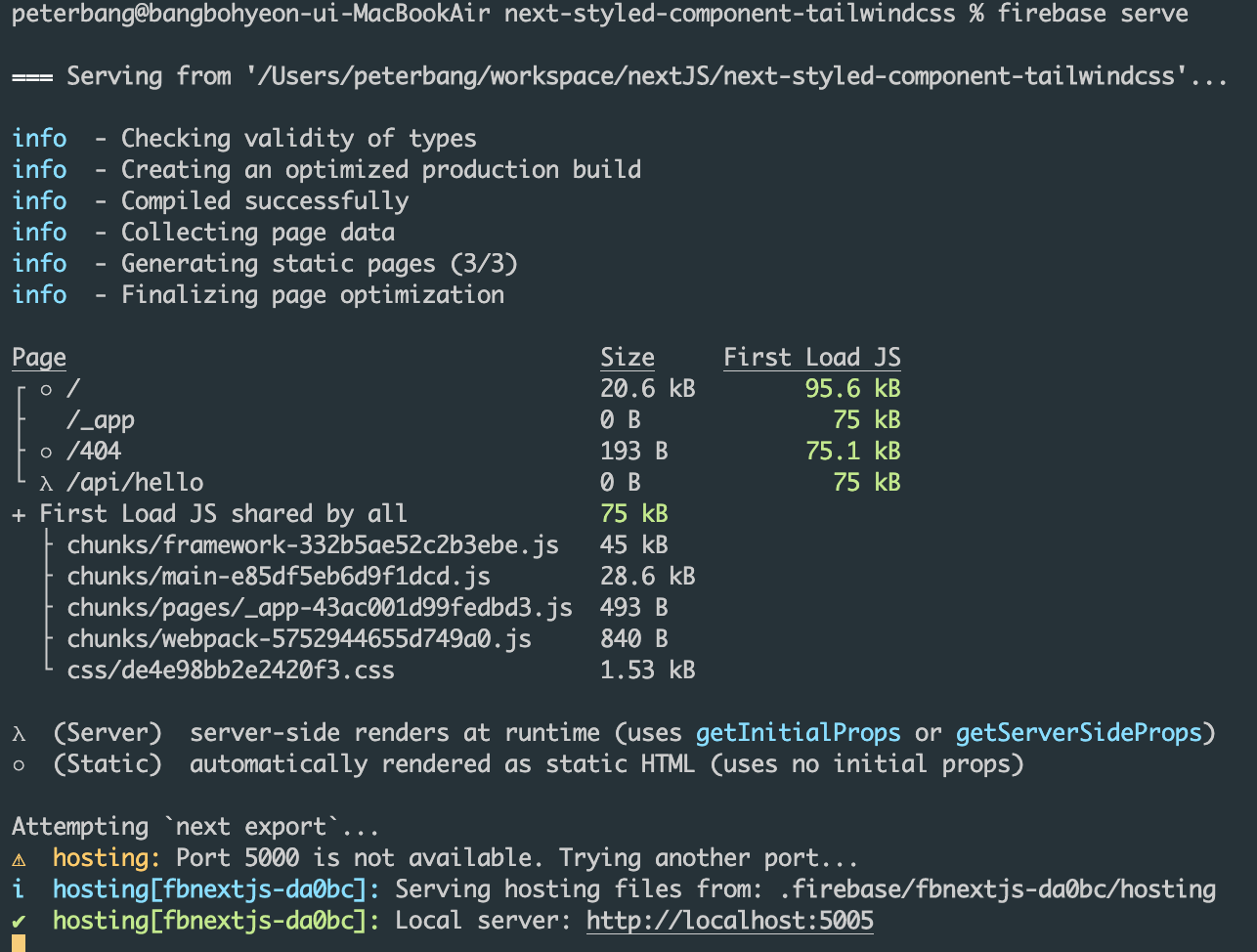 3. next.js root 폴더에서 firebase hosting init 해서 연결해주고~( 프로젝트 연결하는 그런 건 생략할게 ㅋ)