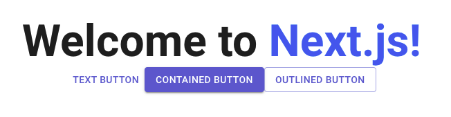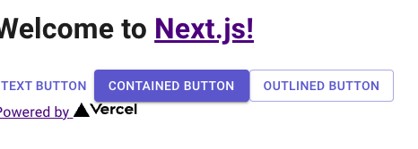 이것들까지 포함시키고 테스트하면 SSR이 적용된 걸 확인할 수 있겠지? 시험삼아 welcome to next.js 아래 mui 기본 버튼을 variant 별로 한개씩 넣어봤어.
