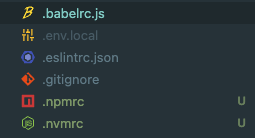 또 .npmrc 파일이랑 nvmrc 파일을 추가해줄건데 npmrc는 npm에 옵션을 줄 수 있고 nvmrc 파일을 통해 어떤 node version을 사용할 지 명시해 줄거야. 두 파일을 새로 만들고 각각 아래와 같이 입력.