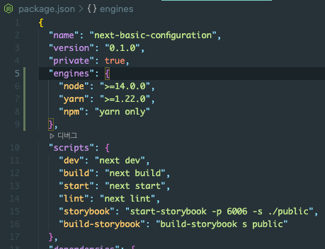 그리고 package.json에 engines 규칙을 넣어주자구! 아래와 같이!