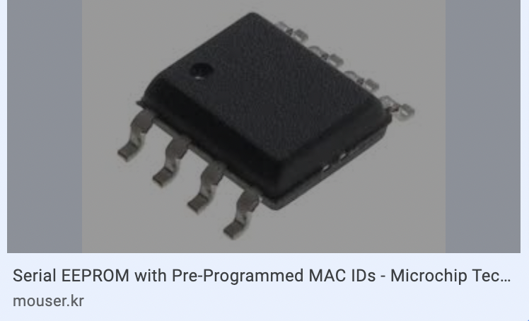 3. eeprom with mac address -> 위즈네트 IC 들은 맥 주소 내장이 안되어 있어 -_- 개 짜증. 나 위즈네트에서 근무할때도 넣자고 몇번 그랬는데 공정에 비용이 많이 든다고 안한데 ㅋㅋ 뭐 어쩌겠어 ㅋㅋ 그런데 IEEE 가서 사자니..... 사이트 가서 구경해봐 ㅎ 10초안에 포기한다. ㅋㅋㅋ 그래서 mac address가 저정되어 있는 eeprom을 사용할거야. microchip에서 나와.