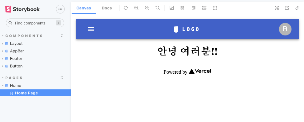 2. Mui appbar랑 footer정도 만들어서 스토리북에 넣어두고(나중에 지우더라도)