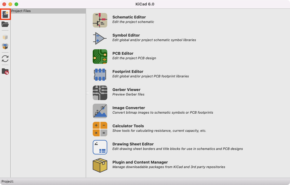 kicad 처음 실행하면 아래와 같은 화면 나온는데 Create new blank project 눌러서 새 프로젝트를 만들어.